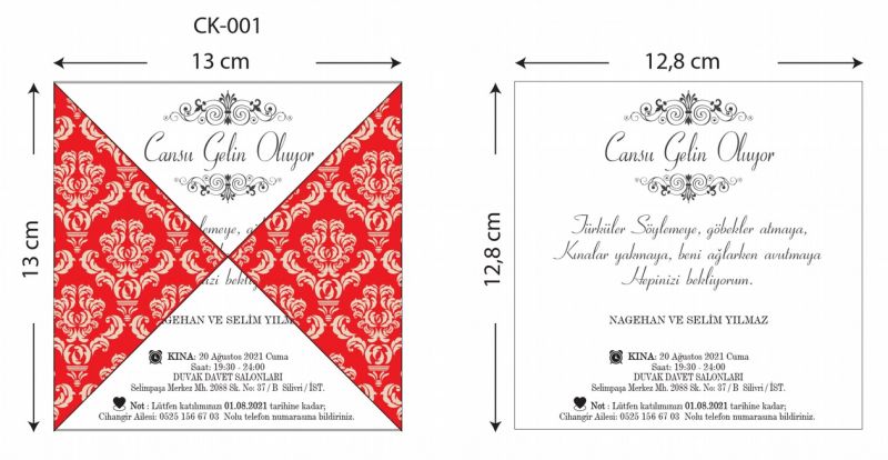 ● Düğün Davetiyesi. Fiyat 1 kutu içindir. (1 kutu 100 adettir)
