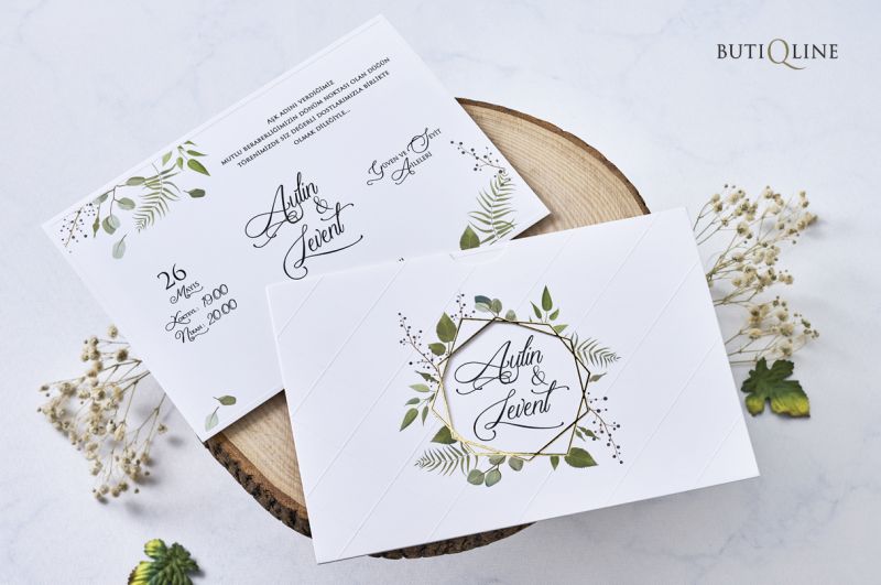 Davetiyeler görselde görüldüğü gibidir. Görselde yer alan zarf ve davetiye aksesuarları fiyatlara dahildir