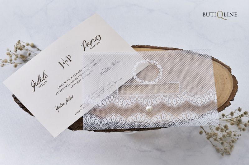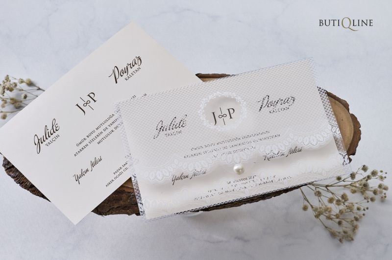 Davetiyeler görselde görüldüğü gibidir. Görselde yer alan zarf ve davetiye aksesuarları fiyatlara dahildir