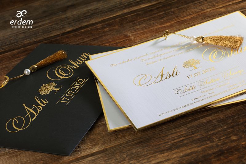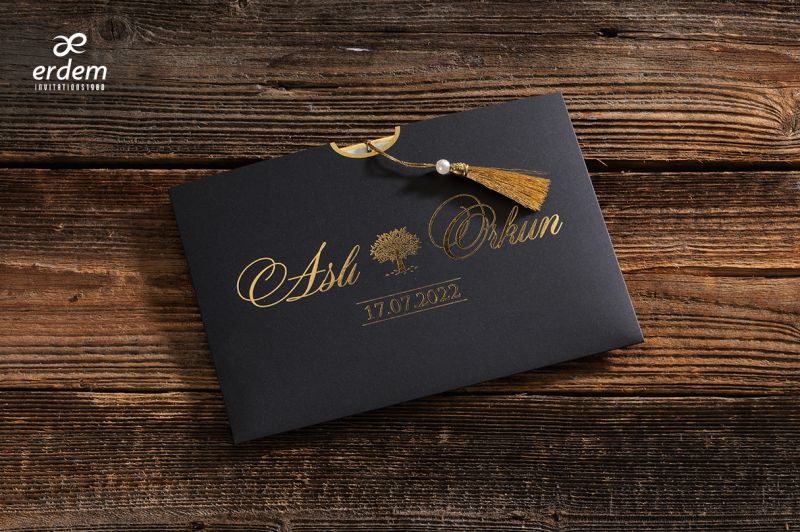 Davetiyeler görselde görüldüğü gibidir. Görselde yer alan zarf ve davetiye aksesuarları fiyatlara dahildir