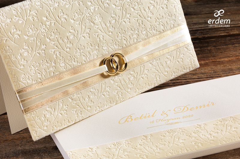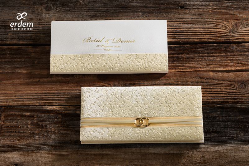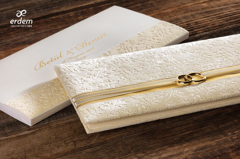 Davetiyeler görselde görüldüğü gibidir. Görselde yer alan zarf ve davetiye aksesuarları fiyatlara dahildir